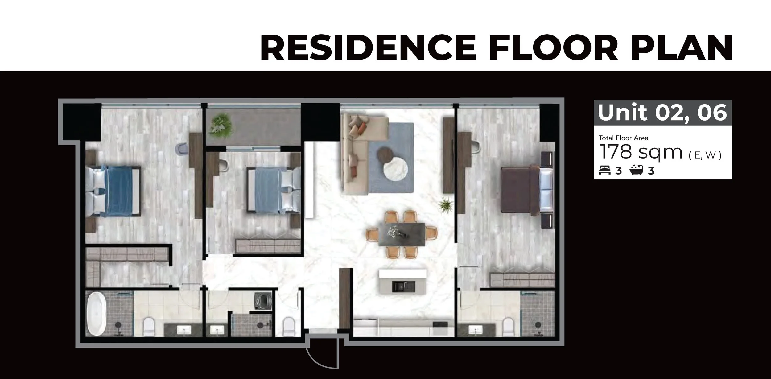 Residences: 360 units, predominantly spacious 3-bedroom layouts (about 166 – 178 m²), ideal for families, executives, or investors.