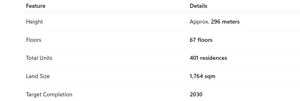 The project integrates residential living, hospitality, and lifestyle amenities within a single vertical community.