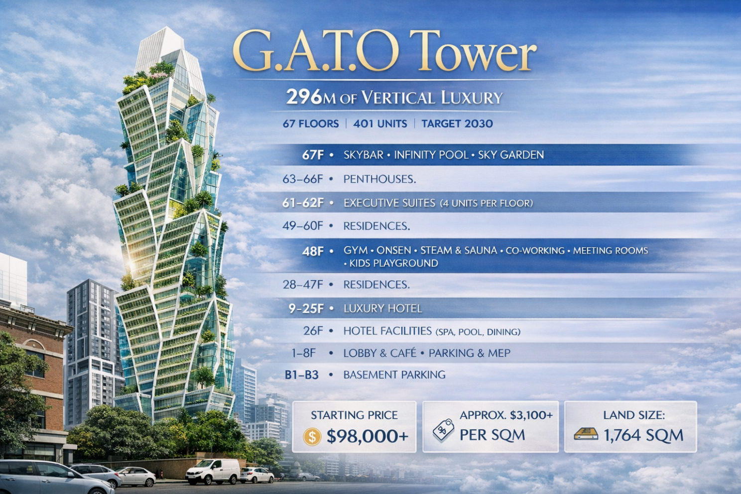G.A.T.O Tower is designed not only as a residential tower, but as a fully integrated vertical lifestyle destination.