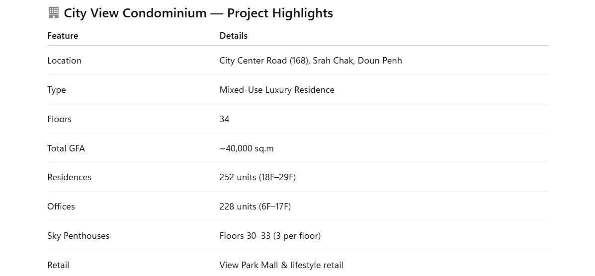 At City View Condominium in Phnom Penh City Center, three remarkable 4-Bedroom Sky Penthouses stand out as some of the most compelling ultra-luxury buys in the market today — delivering exceptional size, flexibility, future capital growth potential, and central-city convenience.