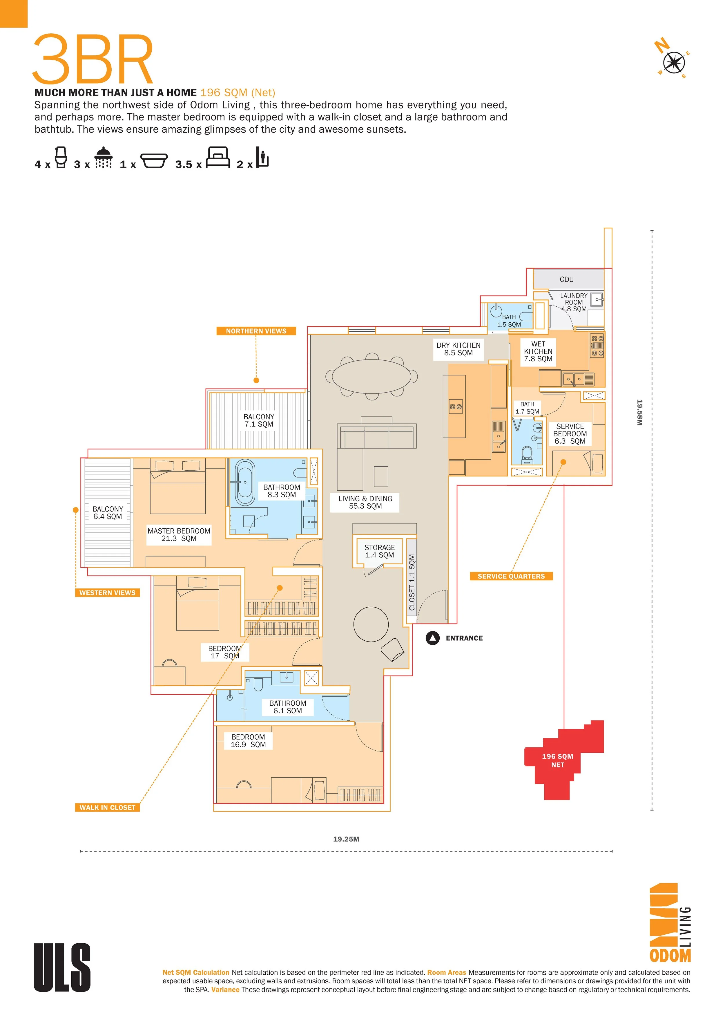 196 SQM (Net Area)