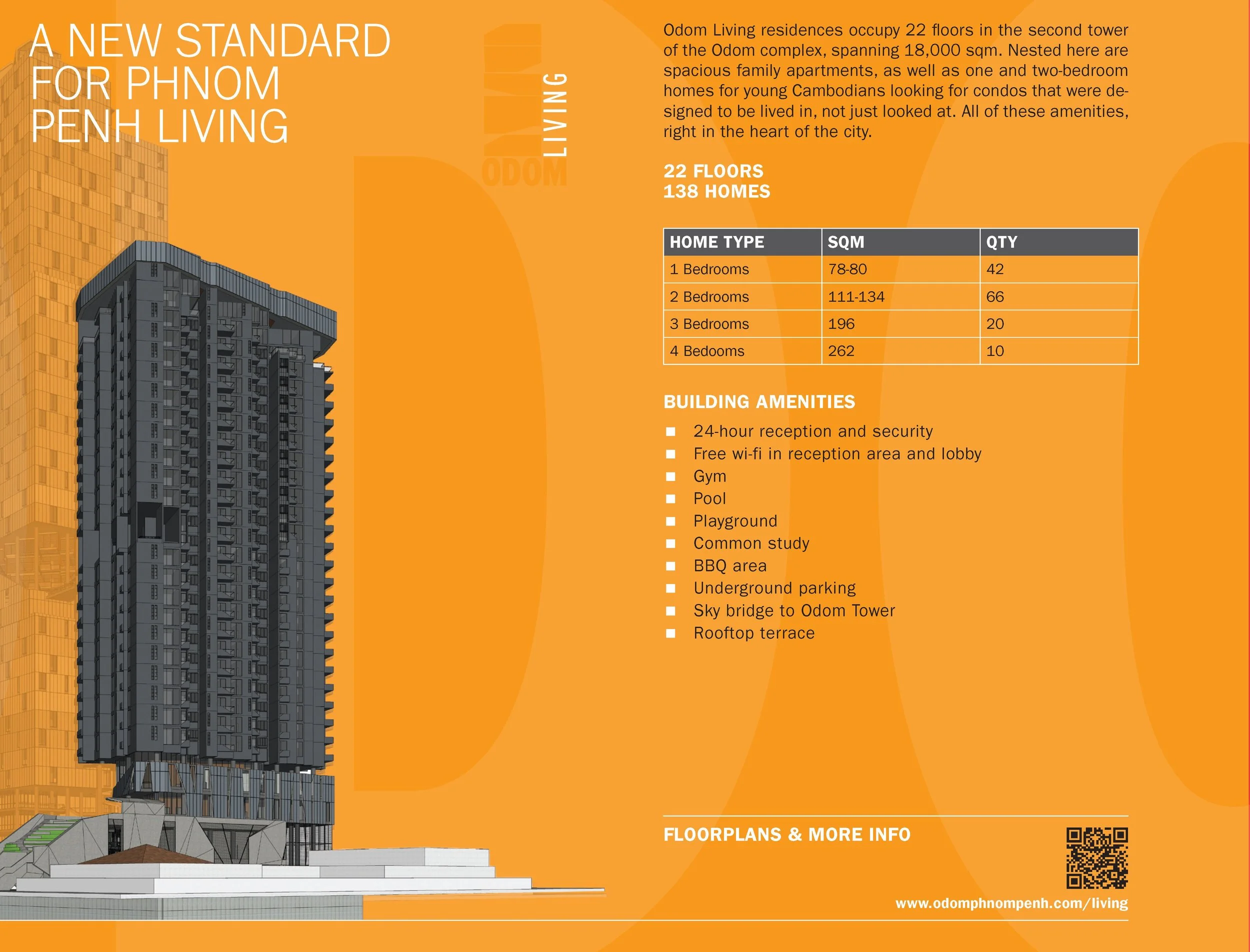 “ Live a premium, connected lifestyle at Odom Living, the new residential tower in Phnom Penh's premier Odom mixed-use development. Located on the prestigious Norodom Boulevard, Odom Living offers spacious 1-4 bedroom condos with high ceilings and stunning city views. Enjoy world-class amenities including an infinity sky pool, rooftop lounge, and state-of-the-art gym. Seamlessly integrated with Odom Tower and Odom Square, you’ll have direct access to Grade A offices, curated retail, and dining. Experience the future of urban living—a vertical village designed for community, convenience, and luxury. Discover Odom Living, where your home connects you to the city.”